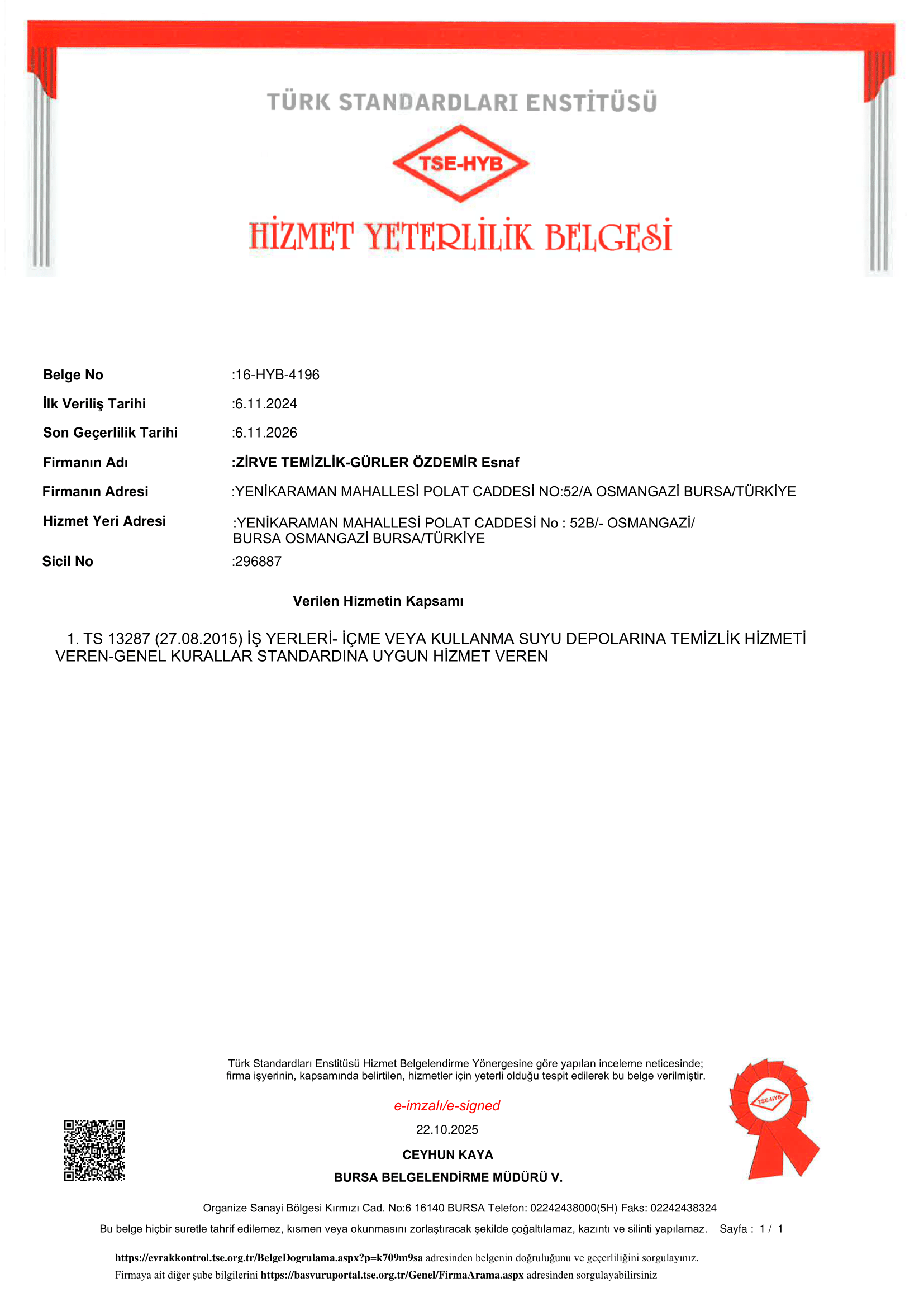 Hizmet Yeterlilik Belgemiz
